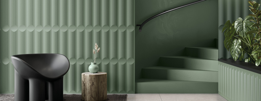 The LOG by ALT DESIGN collection is directly inspired by woodworking techniques and, more particularly, by the construction of mountain chalets whose walls are assembled from logs. The curved part of each tile echoes wood-turning techniques, used to achieve curved shapes, while the ends evoke the mitre cuts often used for assembly purposes or the oblique cut that is made to fell a tree so that it falls in the right direction. Because wood is a living, tactile material, we wanted to give the collection an uneven grooved texture reminiscent of the bark of a tree.
